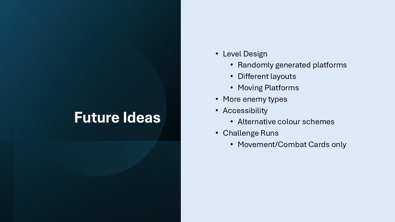 Dead Draw is a fast-paced combat platformer where the goal is to survive as long as possible without dying or running out of time. Grow your deck of cards and adapt your playstyle to what you take and what you come across each run. Completing runs increases the challenge but also makes you stronger. Reach the elevator at any cost. How much will you draw before the facility tears you down?